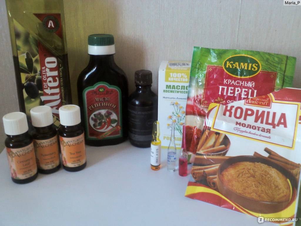 Перцовая маска готовится следующим образом: две столовые ложки репейного масла смешиваем со столовой ложкой перцовой настойки и тремя чайными ложками бальзама. Смесь подогреваем до комфортной температуры и наносим массажными движениями на кожу головы. Ощущение жжения считается нормальным, но, если «печет» слишком сильно, немедленно смойте состав! Время воздействия — 10 минут.