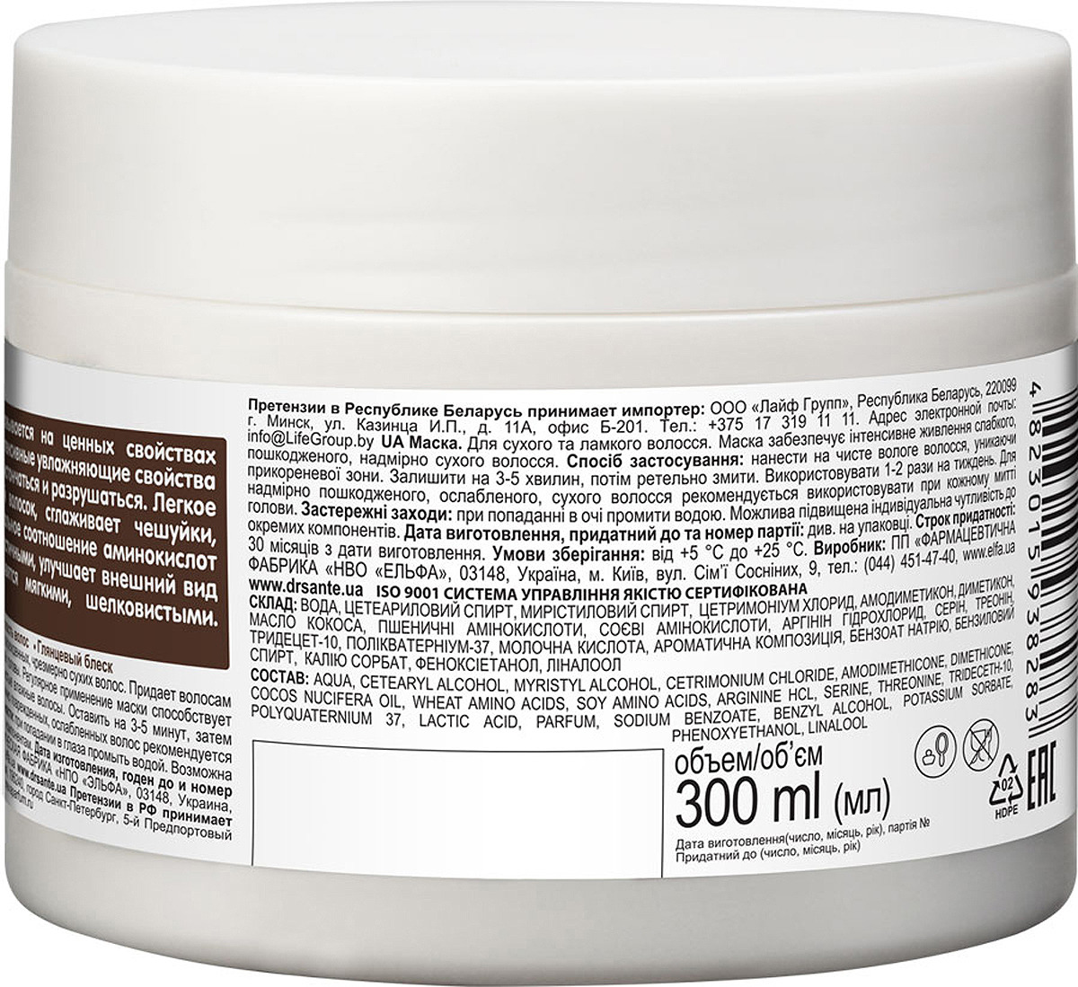 Хранить в герметичном контейнере в холодильнике. Срок годности этой маски — одна неделя.В зависимости от длины и толщины волос маску можно использовать один или два раза.