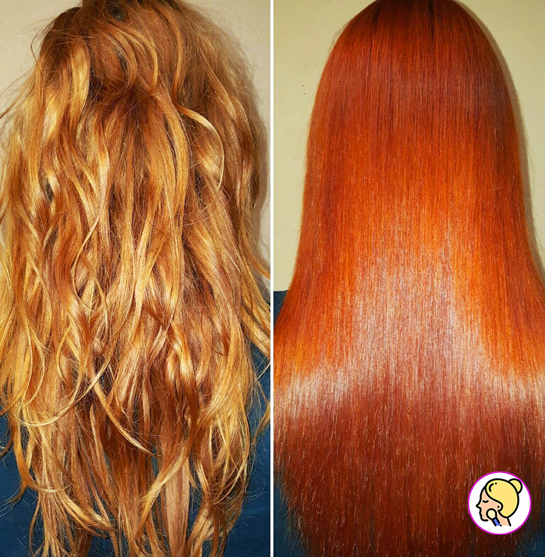 Пряди приобретают эластичность, выглядят более ухоженными и густыми. Желатиновая ламинирующая маска для волос помогает визуально маскировать секущиеся кончики, придает шелковистый блеск, что наглядно демонстрирует фото «до и после».