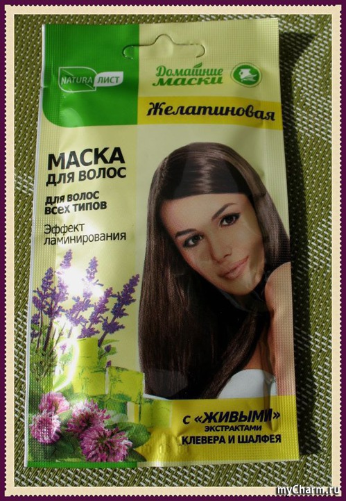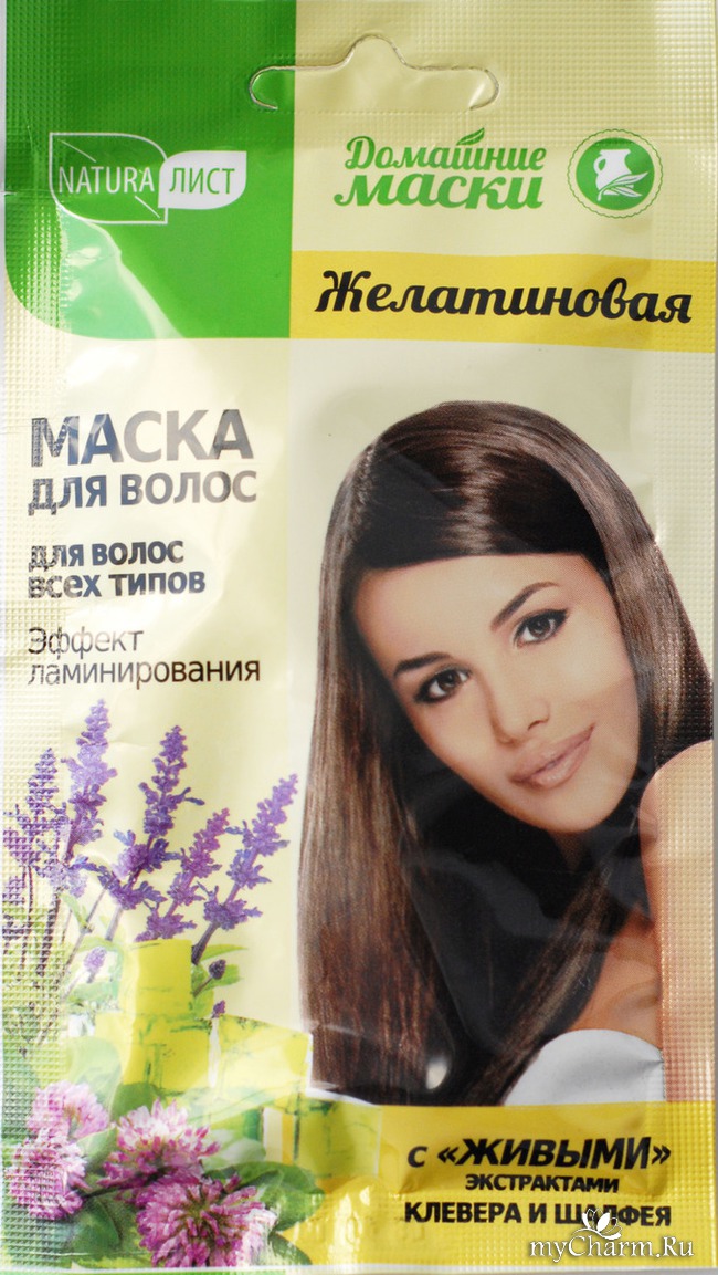 Желатиновая пленка покрывает волосы и, подобно салонному ламинированию, защищает их от негативного воздействия внешней среды, а другие компоненты маски способствуют укреплению, увлажнению и росту волос.