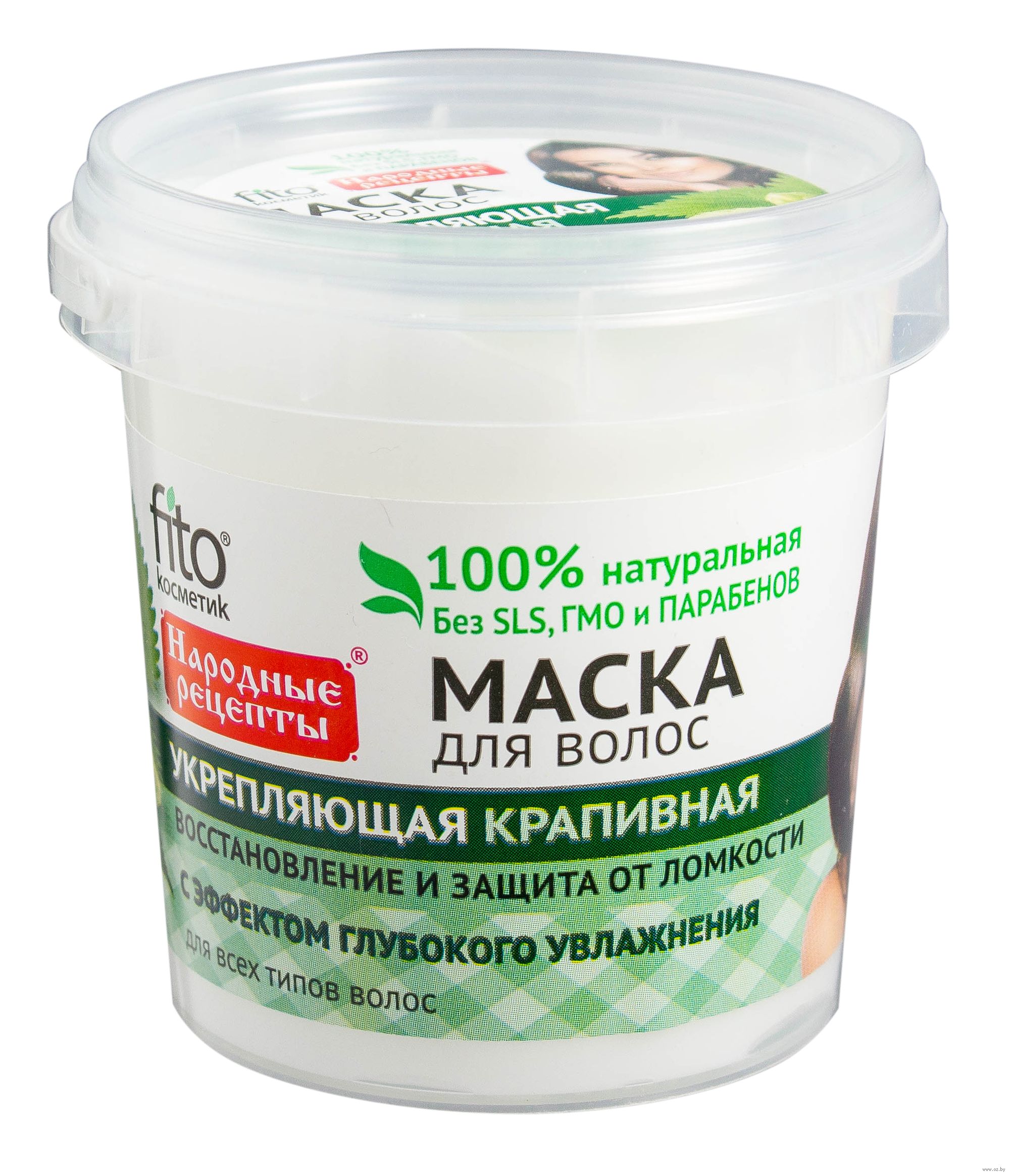 Маска для волос Народные рецепты Укрепляющая крапивная, восстановление и защита от ломкости, 155 мл