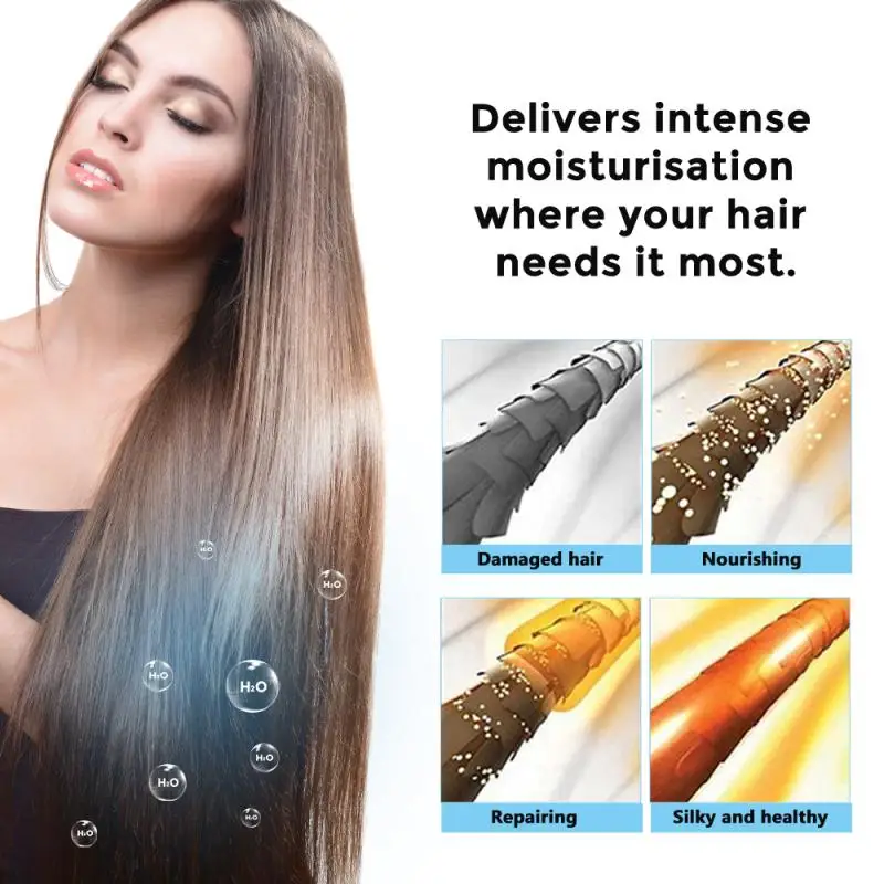 Быстрое восстановление структуры волос, упругая и упругая губа, висящая вдоль волос, волосы мгновенно отрастают.