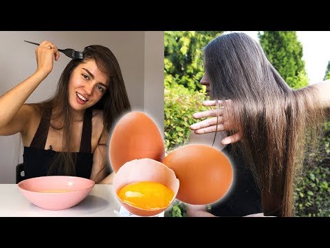 Чтобы сделать эту маску, начните с чистых, сухих волос. Размешайте яичный желток и пальцами нанесите маску на кожу головы и кончики волос.