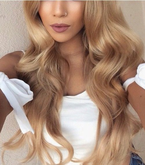 Карамельный блонд выглядит как утончённая смесь жёлтого блонда и коричневого цвета и имеет оттенок жжёного сахара.