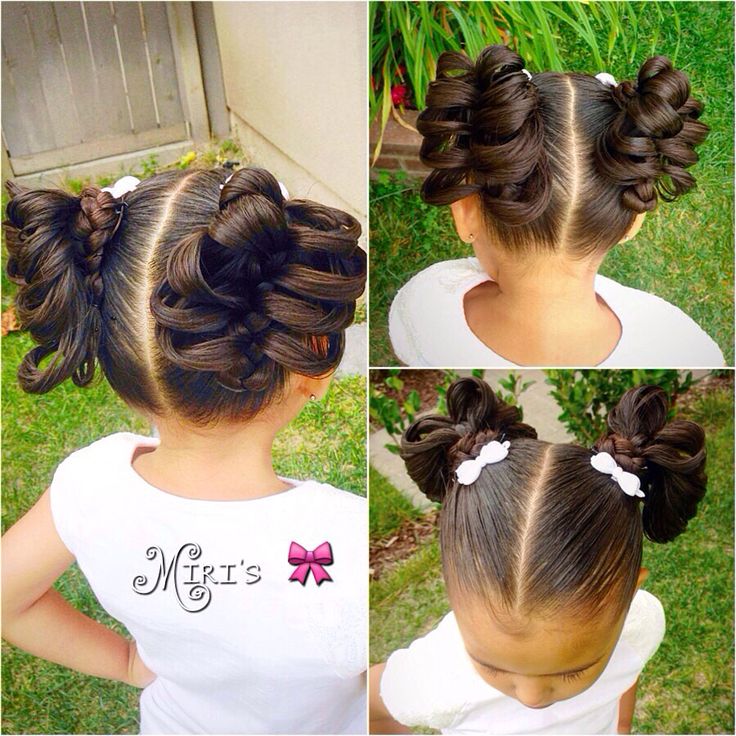 Если возникло желание прийти на утренник в садик с прической, сделанной на основе кудрей, то лучше отдавать предпочтение средним упругим кудряшкам. Не рекомендуется выполнять их с использованием щипцов, потому что это может повредить еще не окрепшие тонкие и мягкие пряди девочки. Также такую прическу на утренник в детский сад называют «Пучки на ночь».