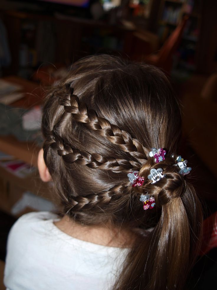 Волосы просто разделены на три разные секции. Каждая из этих секций затем заплетается в определенном направлении, где из скрученных концов можно сделать конский хвост. Когда все три секции будут готовы, у вашей маленькой девочки будет три хвостика. Если вы хотите, вы можете добавить немного изюминки к скрученным концам, добавив бусины или даже добавив насадки разных цветов, которые сделают маленькую девочку выделяющейся.
