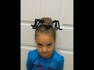 Я люблю эту простую и глупую булочку в виде паука для веселой прически на Хэллоуин.