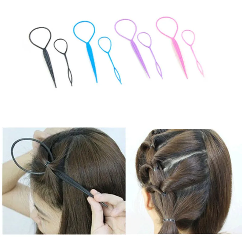 Приобрести Topsy Tail можно в магазине аксессуаров для волос или же в Интернете. Инструменты бывают разных размеров, также отличаются количеством петель (могут быть как с одной, так и с двумя). Продаются они комплектом: одна большая, которая составляет 19 см в длину и одна маленькая — 14 см.