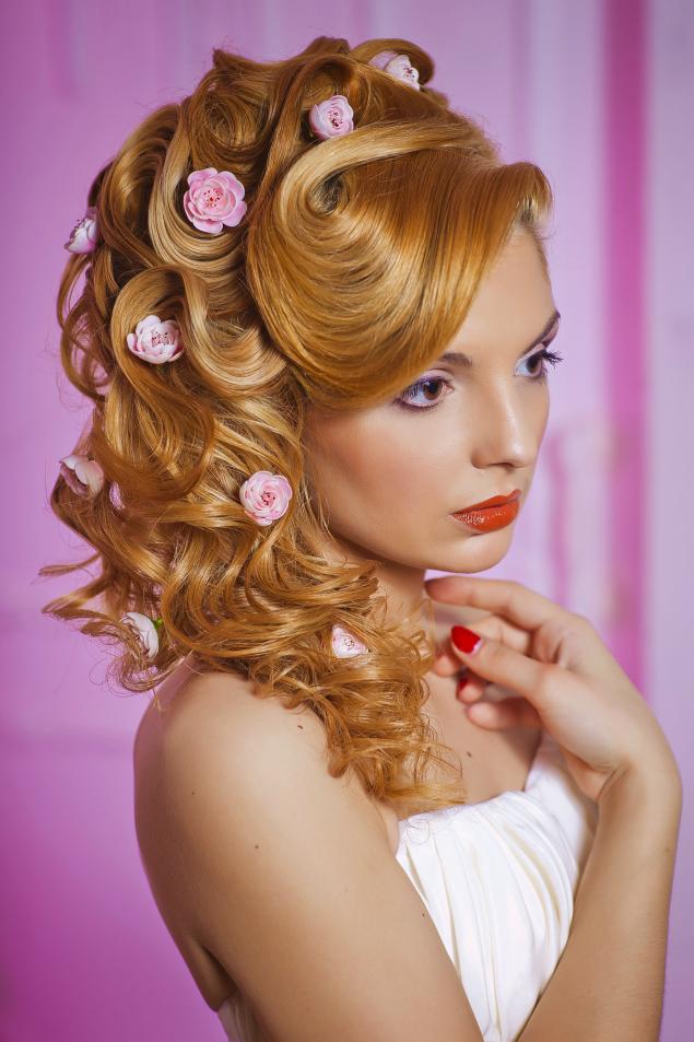 Предполагает красивые волны, объемные косы, аккуратно уложенную челку, использование ободков и гребней.
