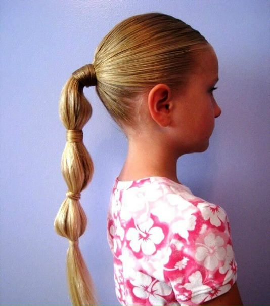 Закрепляете хвост на макушке. Теперь на одинаковом друг от друга расстоянии завязываете мелкие резинки. Немного ослабьте волосы, чтобы получились как будто фонарики. Смотрится очень стильно.