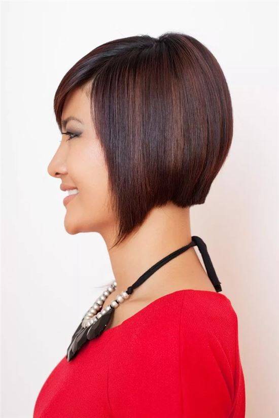 Это эффектная и четкая стрижка боб А-силуэта, которая будет привлекать взгляды на каждом углу. Добавьте немного блеска с помощью подходящего лака для волос, и этот шикарный современный боб будет привлекать взгляды, куда бы вы ни пошли.Градуированный боб