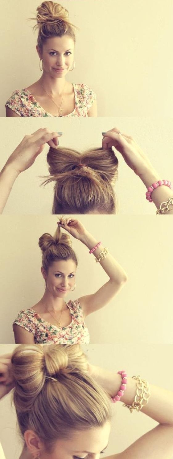 Быстрые прически на каждый день своими руками, фото. Пучок.
