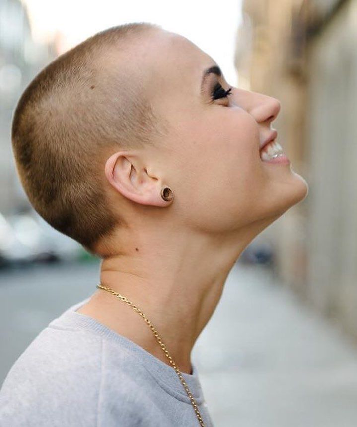 Thin BuzzДевушкам с тонкими или тонкими волосами можно сделать лысую прическу с тонкой короткой стрижкой. Ваш красивый оттенок кожи будет сиять в этом дерзком образе.
