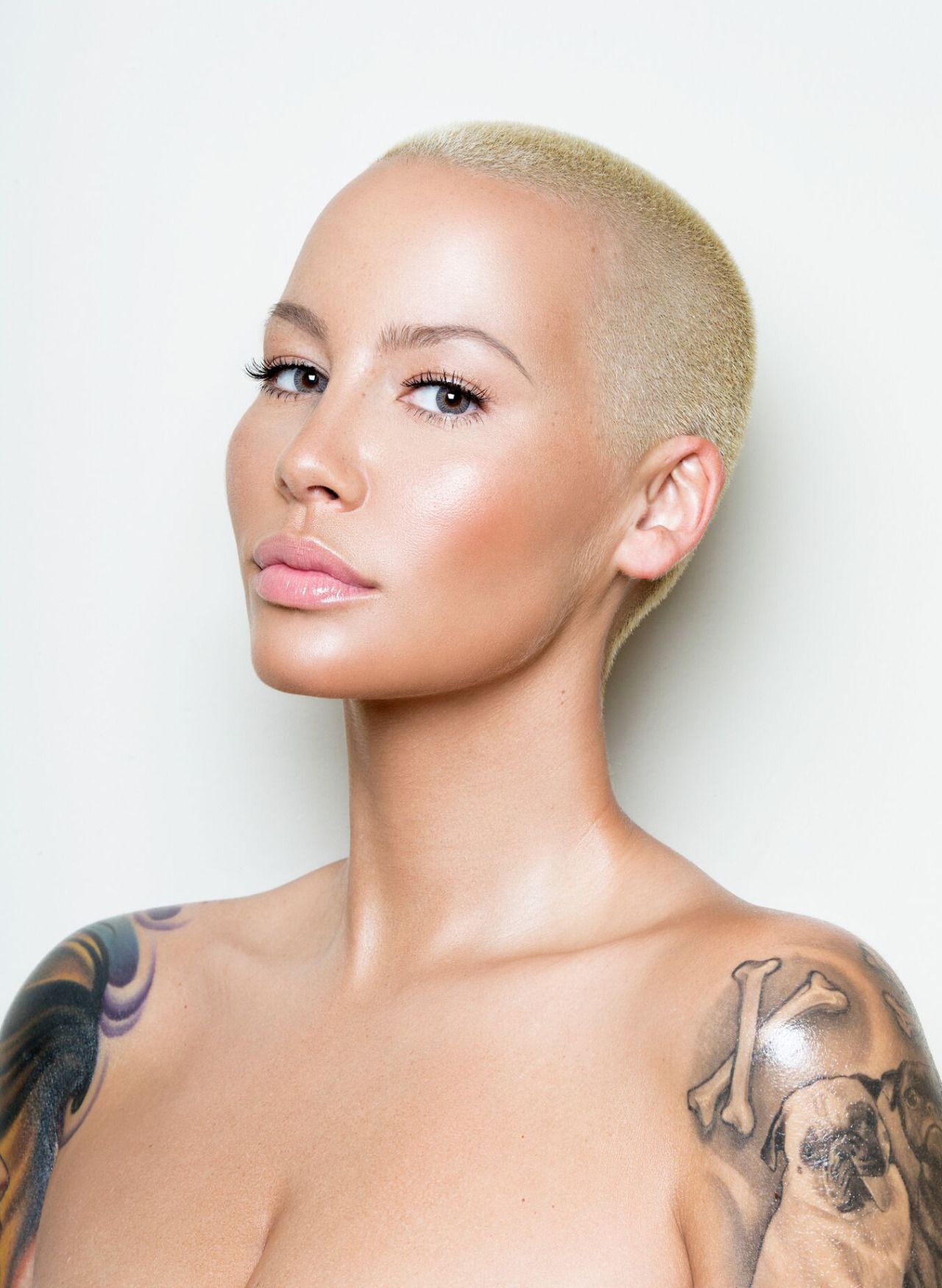 - Большие глаза и пухлые губы. Девушки, обладающие утонченным чертами лица, от бритья на лысо становятся только более обезличенными.