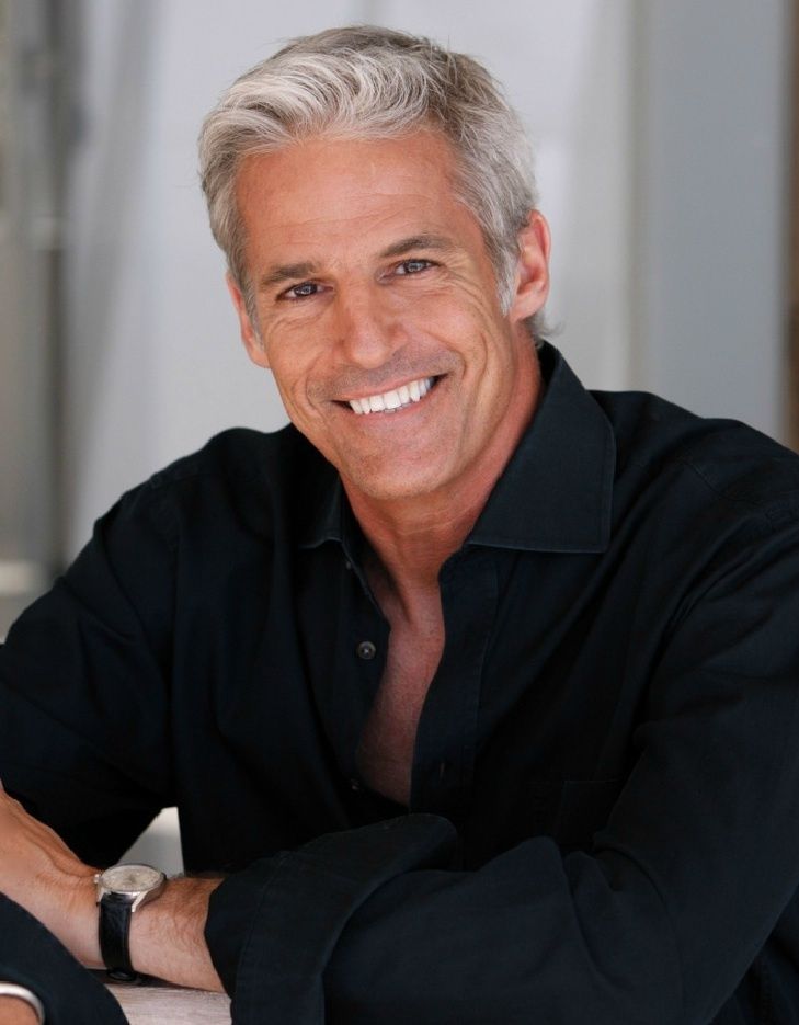 Мужчины среднего возраста с короткими и тяжелыми текстурами, такими как кудри или легкие волны, отлично смотрятся, если придать волосам форму с помощью продукта. Держите длину до плеч, чтобы подчеркнуть овальное или круглое лицо.