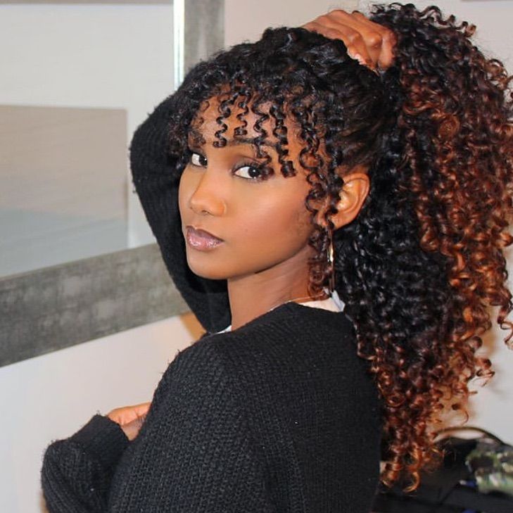 Некоторые люди говорят, что чернокожим девушкам с кудрявыми волосами не следует делать челку. Но почему бы и нет, если челка такая хитовая?! Расслабленные кудрявые прически творят чудеса с кудрявой челкой.