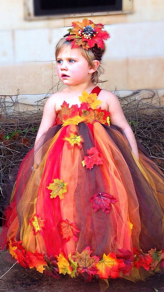 Для создания такого платья для осеннего бала используйте фатин соответствующих цветов: желтого, коричневого, оранжевого. Чем больше цветов вы будете использовать, тем насыщенней и богаче будет выглядеть юбка. Украсить ее можно бантиками из того же фатина, засушенными (или искусственными) осенними листьями.