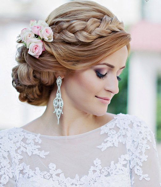 Свадебные прически выглядят очень мило, когда они сочетаются с косами.