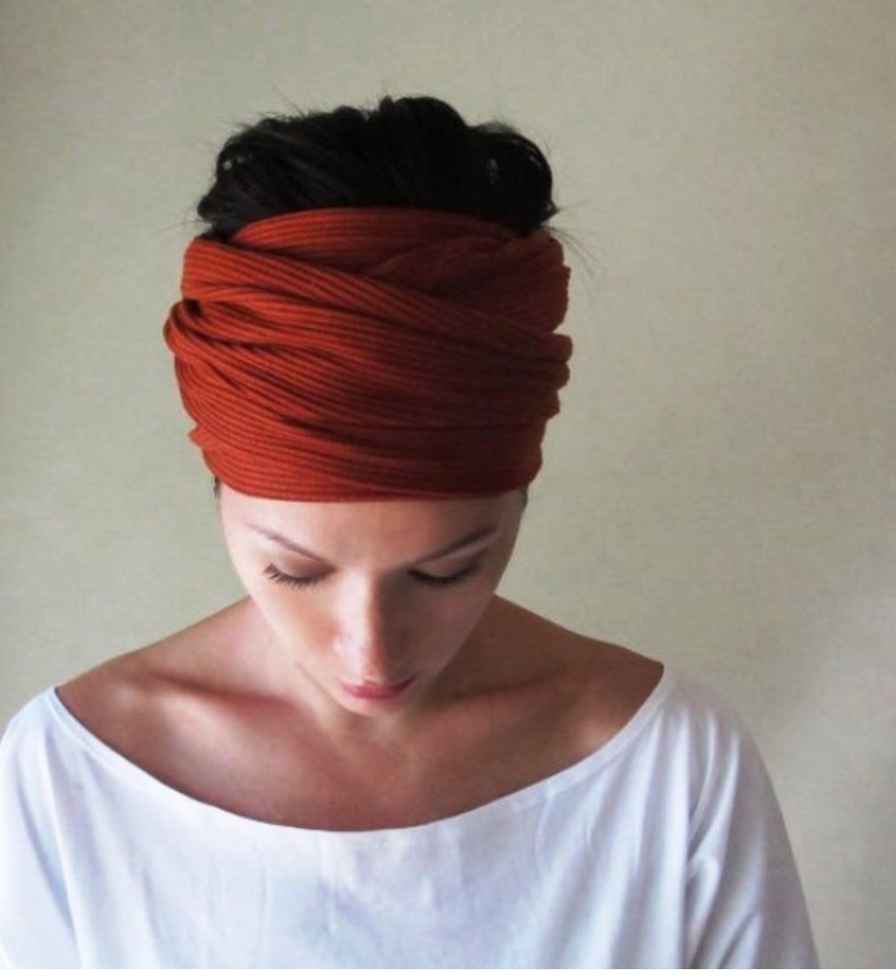 - Замотайте их футболкой и надежно закрепите кончики внутри чалмы.