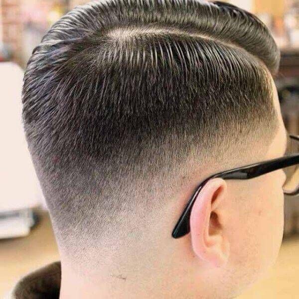 Зауженные по бокам волосы с зачесанными назад волосами на макушке — отличная деловая или профессиональная стрижка.