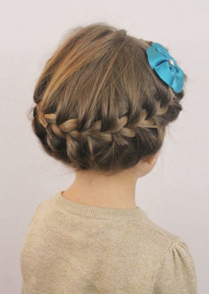 Если вы хотите сделать детскую укладку с элементами плетения «корзинки», то лучше всего добавить к ней корону, тогда ваша принцесса затмит всех. Кроме того, разные вариации «корзинки» можно плести с бантиками для похода на Первое Сентября в школу.