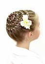 - По желанию прическу можно декорировать бантами, цветами и другими витражными изделиями.