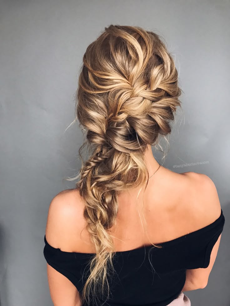 Чтобы сделать эту прическу, требуется профессиональная помощь, так как не всем легко завязать ее самостоятельно. Здесь коса представляет собой сочетание небрежного вида, а также можно прикрепить стиль скрученных кос и аксессуары для волос по своему выбору.
