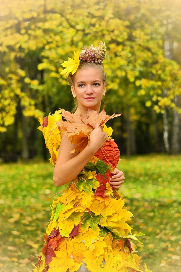Смуглая кожа и тёмные густые волосы сами по себе очень хорошо сочетаются. Но праздник осени требует красивой причёски, поэтому подкрутите ровные пряди и сделайте на макушке небольшой хвост, чтобы остальная часть волос ниспадала на плечи. С такой причёской может справиться даже папа!))