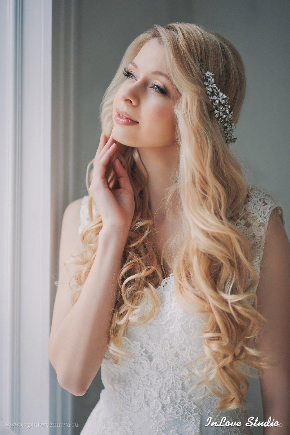 Прическа для невесты на свадьбу с локонами на длинные волосы