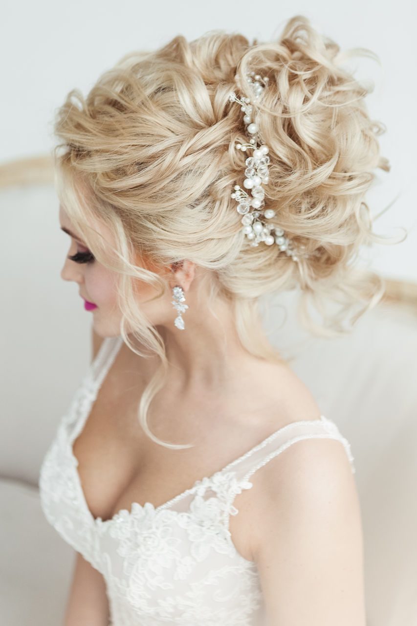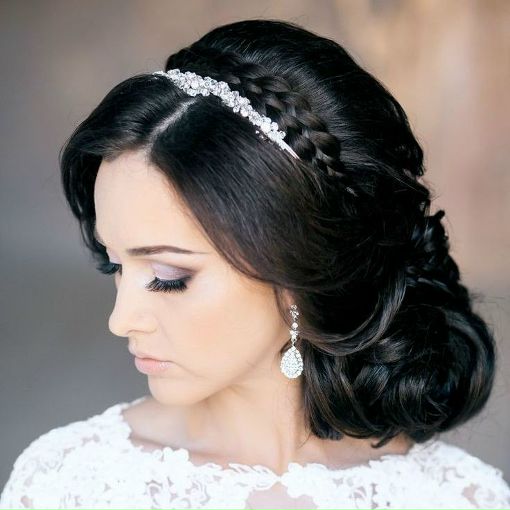 Разнообразить прически поможет заколка со стразами, а также диадема. Невеста в них напоминает принцессу из сказки.
