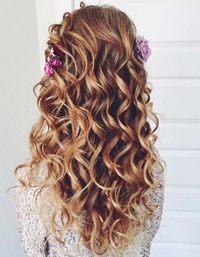 На распущенных вьющихся волосах будет отлично смотреться «мальвинка». Просто соберите пряди по бокам и закрепите их на затылке красивой заколкой. Образ получится невероятно женственным и изящным.