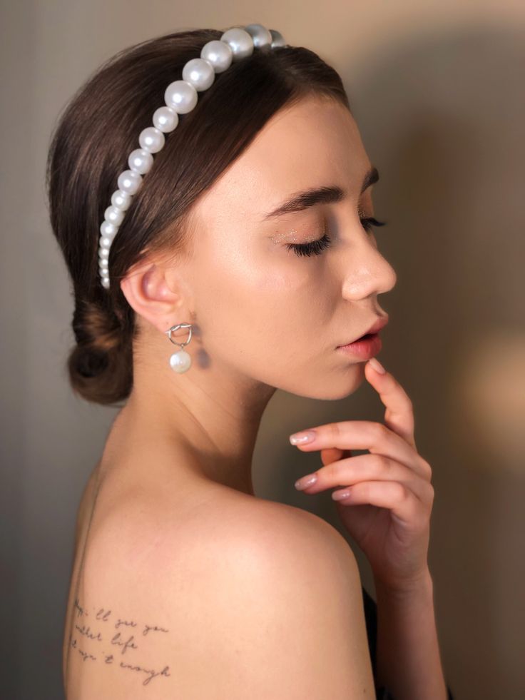 1. Повязка на голову с белым жемчугом и распущенными волосами