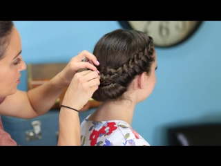 Шаг 3: Возьмите первую косу, перекрестите ее поверх волос и плотно закрепите заколками.