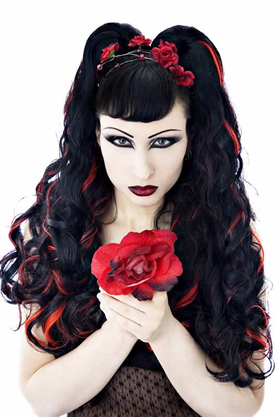 Черные волосы с белой полосой — классические вампирские волосы. Если хотите чего-то более современного, попробуйте распущенные рыжие огненные волосы, как у Виктории из «Сумерек».