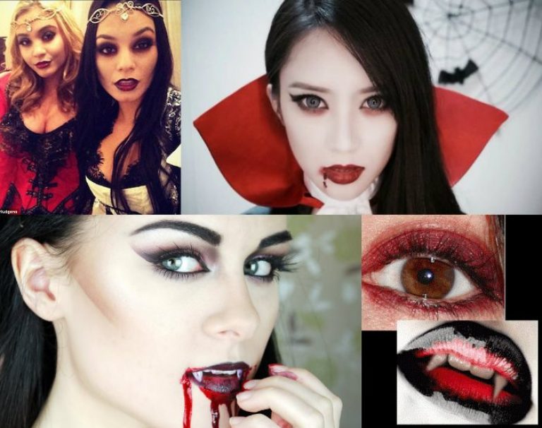 Сначала у нас есть классический вампирский макияж.Итак, у нее темные глаза и темные губы с небольшим количеством крови. Это забавный и жуткий образ, который идеально подходит для Хэллоуина. Носите макияж с накидкой, как показано на рисунке, или можете немного смягчить ее. Нам нравится этот образ, и он отлично подходит для любого праздника Хэллоуина.