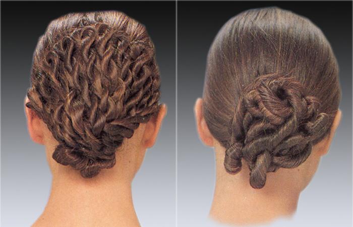 После этого затылочную область начесываем, чтобы получился дополнительный объем. Пригладив их сверху щеткой, волосы перекручиваем и собираем на затылке, прикрепляя шпилькой.