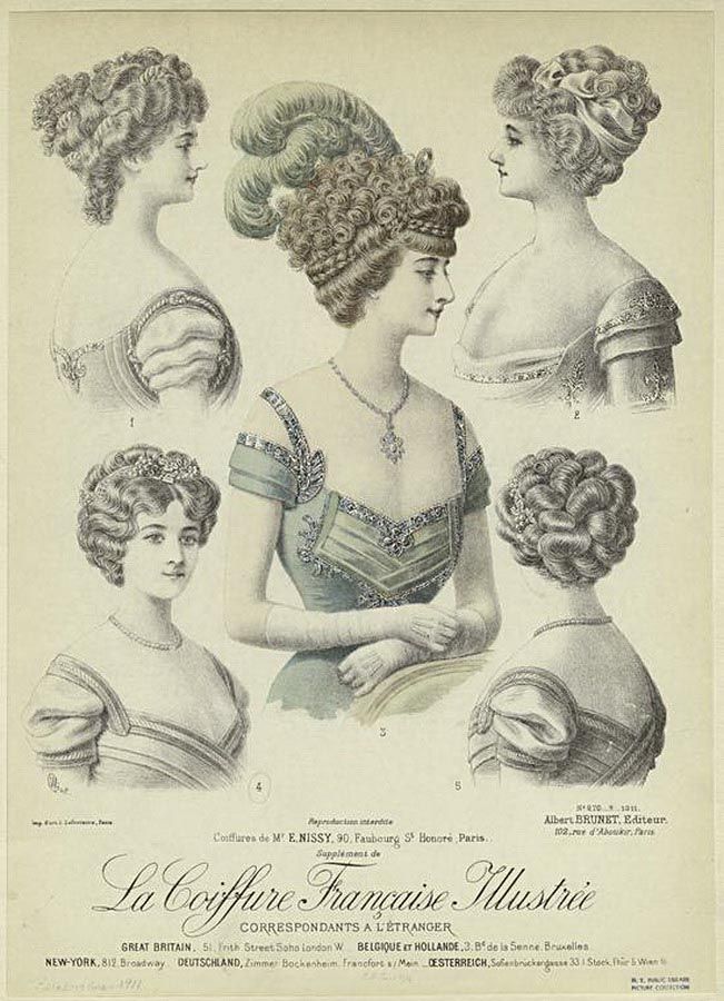 Мода на прически в 18-м веке во многом зависела от королевы Марии Антуанетты, которая вместе со своим парикмахером Леонаром постоянно занималась изобретением новых и новых фантазийных причесок. Это были огромные и сложные прически, которые часто соединялись с головным убором. Им давали названия: «взрыв чувственности», «тайная страсть». Самыми стильными и модными считались дамы, которые готовы были экспериментировать, взгромождая на голову птичьи чучела, миниатюрные деревца и даже целые сады, статуэтки.