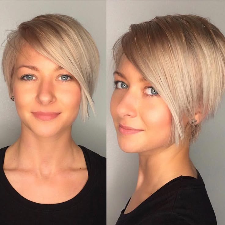 Для тонких волос такая стрижка — идеальный вариант. Интересно будут смотреться варианты и с чёлкой, и без неё. Меняя расположение пробора, вы получите чуть ли не новую стрижку.