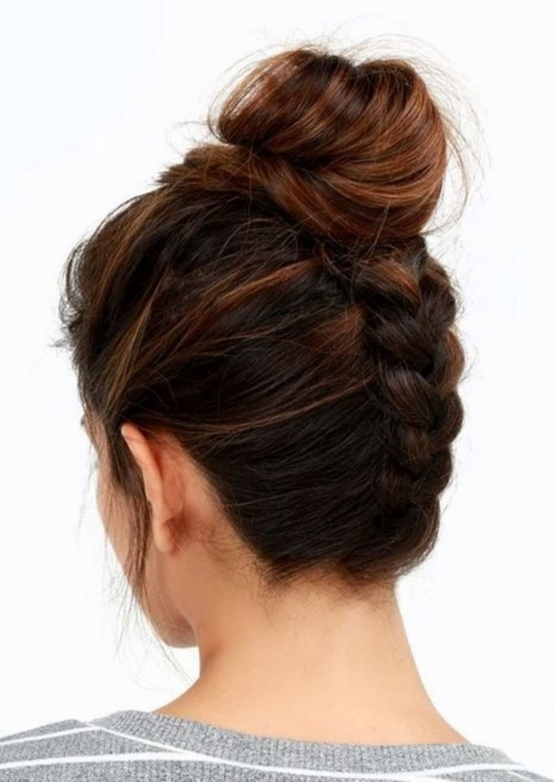 Этот вид может быть таким простым или сложным, как вы хотите.Самый простой способ — заплести волосы и заплести их в пучок. Более сложный вариант — сделать несколько разбросанных миниатюрных французских косичек и завернуть их в прическу.