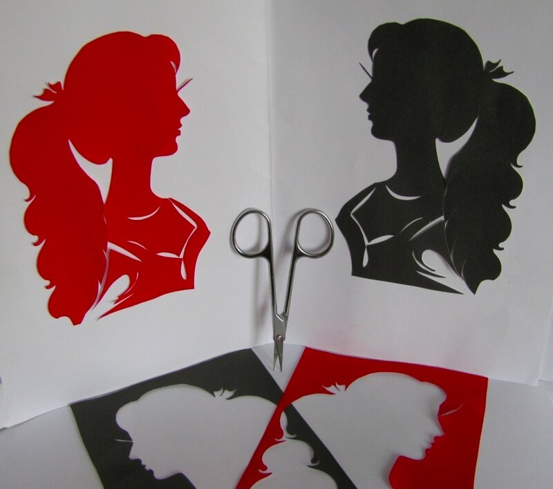 Переверните волосы с челкой на бумагу, оставшуюся от вырезания, и нарисуйте остальные волосы.