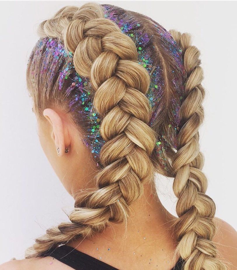 Двойные голландские косички для женщин /черезЭта прическа по-прежнему привлекательно смотрится на светлых волосах. Если вы не можете принять яркий цвет волос, просто сделайте прическу со своими натуральными волосами.
