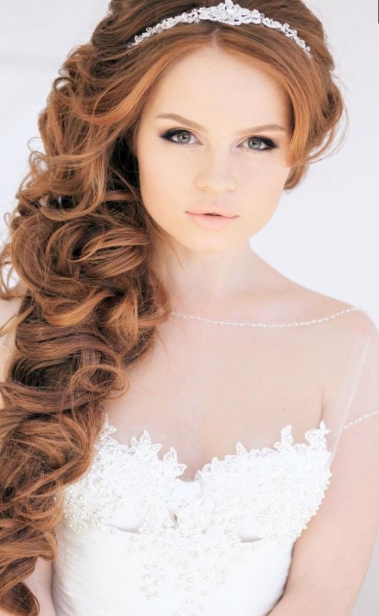 Вариантов диадемы очень много. Некоторые из них похожи на корону, другие на ободок. Диадема удачно сочетается с челкой, завитками или косами. Иногда его дополняют вуалью. Если вы хотите показать красоту диадемы, лучше не делать сложной и многослойной прически.Волосы можно слегка приподнять сзади и плавно зачесать спереди.