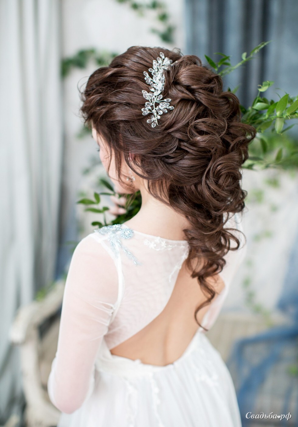 - Если невеста не любит всякие побрякушки, то кудри, поднятые к макушке, создадут праздничный образ