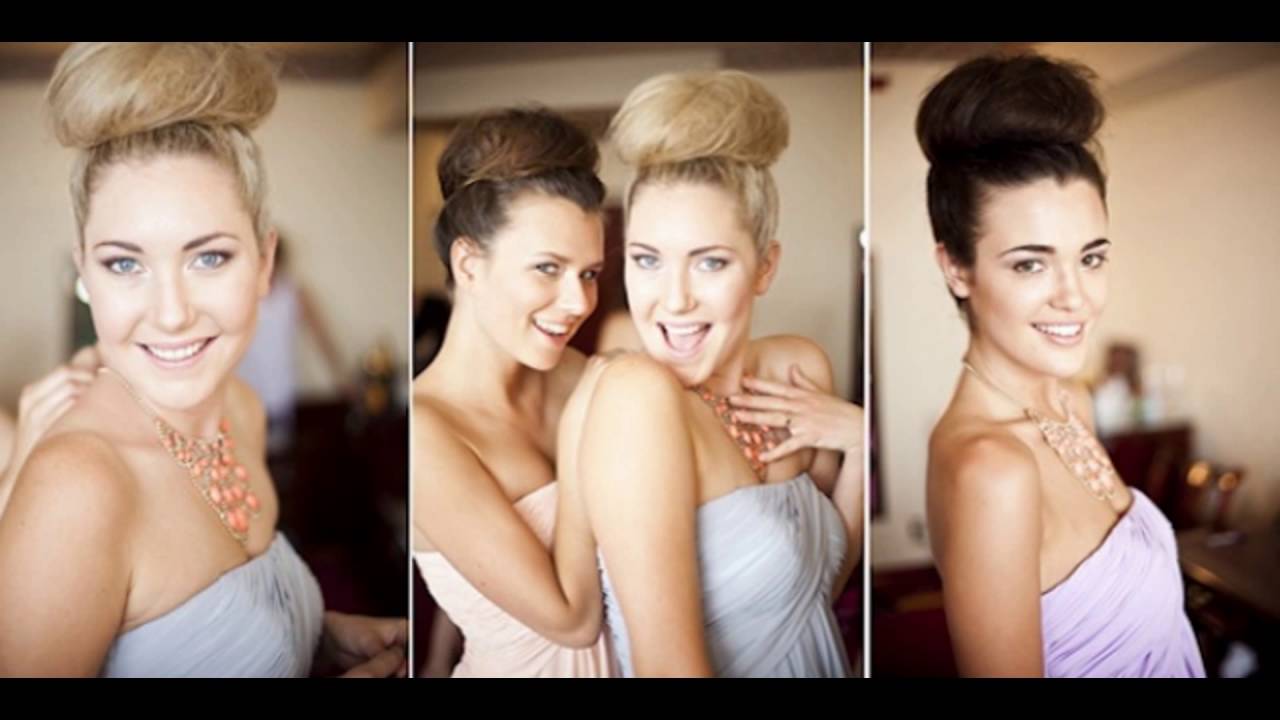 - В основном платья подружек шьются на заказ, укладка должна соответствовать облику наряда. Пусть прическа будет той же формы и декорирована теми же элементами (стразами, жемчугом, блестками), что и шевелюра виновницы торжества. Но она должна быть строже, украшена менее ярко.