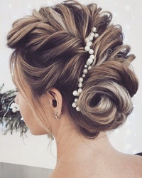 - Длина прически. Обладательницам пышных волос повезло, так как для них можно подобрать много моделей укладки, начиная от «французской ракушки» и заканчивая «греческой» косой. Девушкам, у которых средняя длина волос или короткая стрижка, можно нарастить пряди, они будут выглядеть естественно и придадут нехватающий объем. Помимо этого, укладку на короткие волосы необходимо дополнить декоративными аксессуарами.