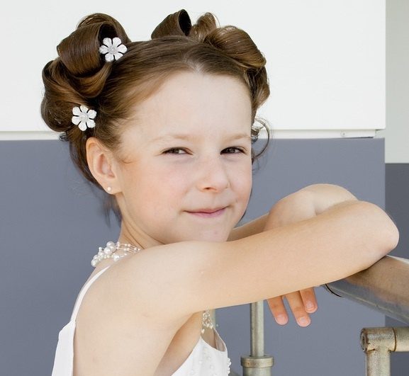Это взрослая прическа удивительно гармонично и элегантно смотрится на девочках 5-7 лет и старше. Сделать ее достаточно просто и окажется под силу любой маме, нужно лишь приобрести специальное приспособление – валик для волос.