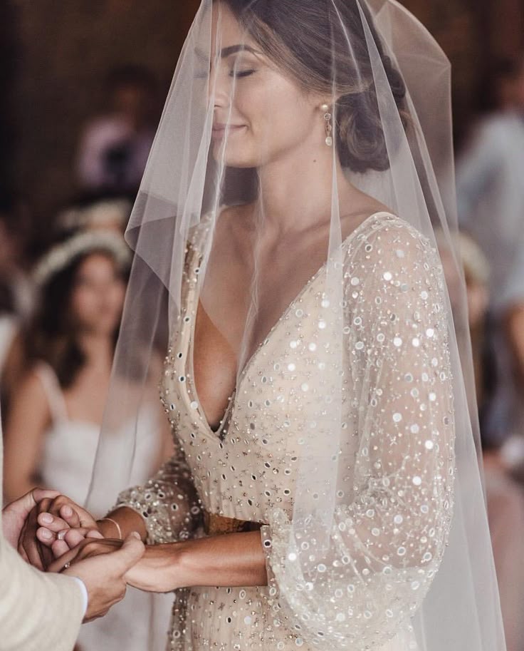 Приберегите такой эффектный образ для вечеринки, а не храма, ведь то, что вы невеста – и так делает вас особенной, обратить на себя внимание с помощью прически идея не очень удачная на венчания.