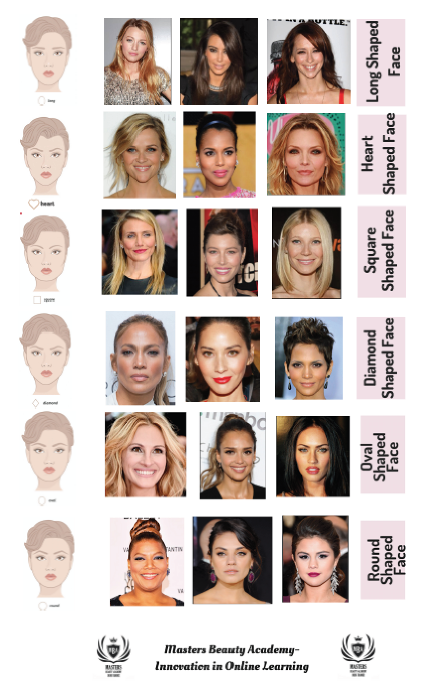 Перевернутые треугольники, с другой стороны, более распространены и считаются более женственными. Широкий открытый лоб и лицо, сужающееся к узкой линии подбородка , также украшают прически, которые маскируют линию роста волос и придают ширину к подбородку.