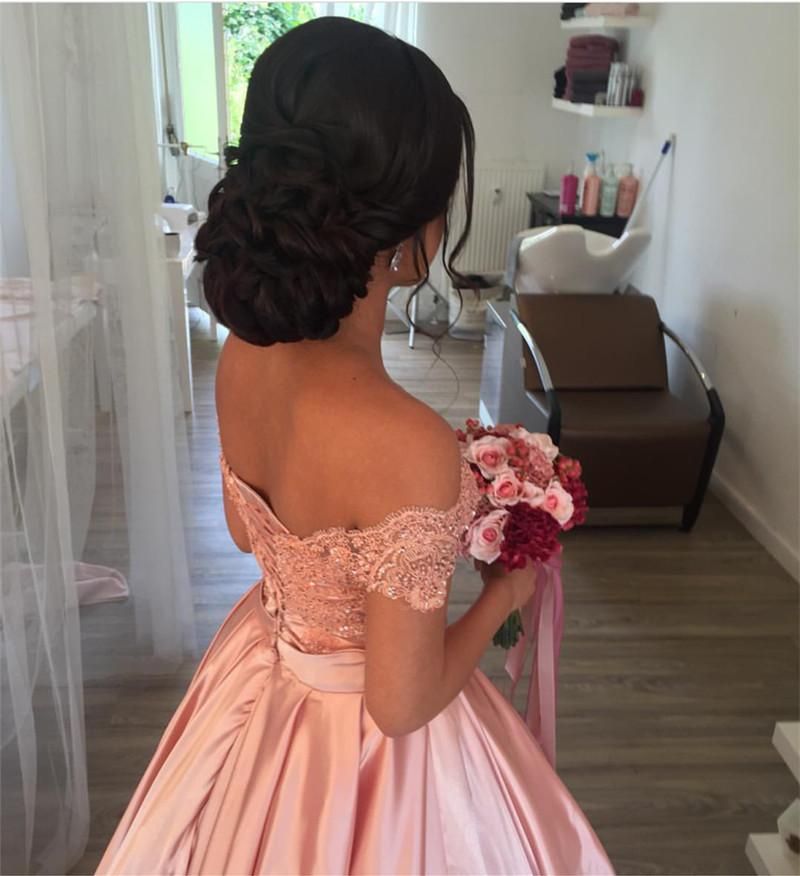 Торжественная причёска к длинному платью с пышным низом должна быть достаточно объемной, чтобы уравновешивать силуэтОбладательницы длинных волос имеют возможность делать самые разнообразные красивые причёскиК высокой причёске и открытым плечам идеально подойдут крупные заметные украшенияТакой вариант придаст обладательнице причёски шарма и очарованияДля волос средней длины