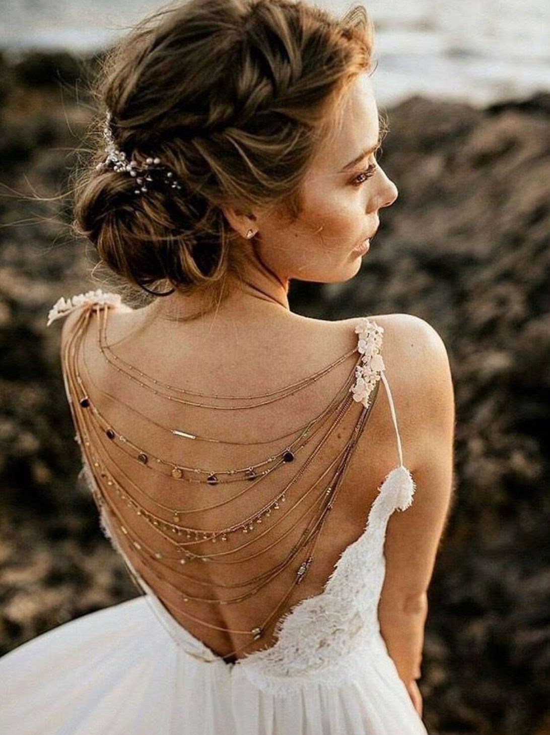 5. Замысловатые прически для свадебных платьев с вышивкой на спине